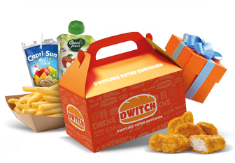 Nuggets x5 OU tenders x2, frites, Capri-Sun, compote, jouet